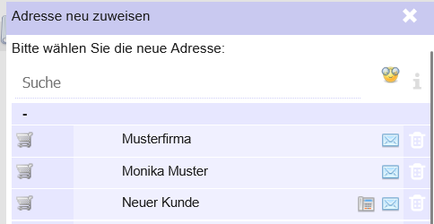 Klicken Sie im Auftragskopf neben den Adressdaten auf das Adressbuchsymbol.
